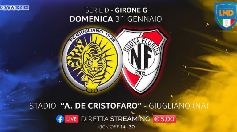 Giugliano-Team Nuova Florida: 0-1, è terminato con questo risultato lo scontro in chiave salvezza al “De Cristofaro” tra i campani e i laziali, valido per la 14a giornata del Girone G di Serie D.